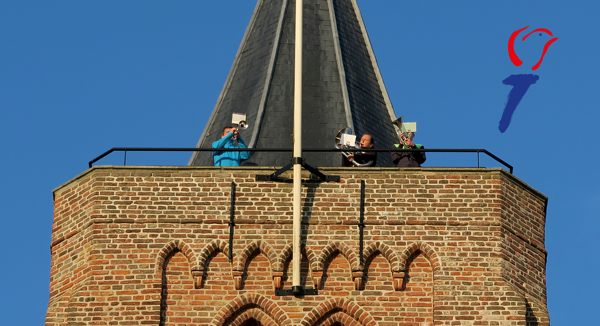 Ook in ’s-Heer Abtskerke deden we mee en klonk het signaal Taptoe vanaf de kerktoren van de Johannes de Doper kerk. Het signaal Taptoe en het Wilhelmus werden geblazen door Corien de Waaij, Marina en Jan Mol.